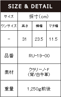 ラッピングがリニューアル⇒ギフト対応をご希望の方はコチラ デビロックストア devirockstoreブランド名品番 【 RUSK PREMIUM 】RU-19-00 素材詳細 クラリーノ・F(背/白牛革) 重量 1,250g前後 cm ワンサイズ 高さ 31 横幅 23.5 マチ幅 11.5